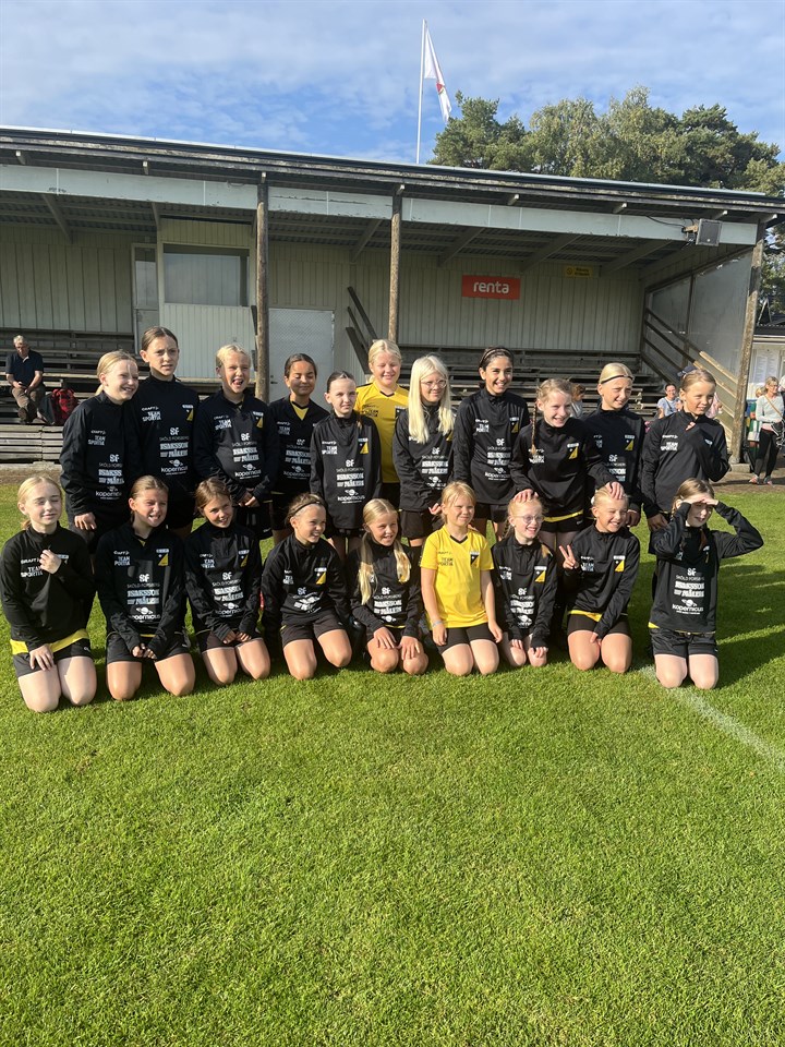 Årets stafsingecup gick av stapeln under sista helgen i aug! Soligt, varmt och grymt fina fotbollsplaner! Första matchen möter vi ett välvuxet lag fran andra sidan sundet! Kul med nya utmaningar och nya lag som vi inte mött tidigare. De spelade passningsorienterad fysisk fotboll som vi, trots storleksskillnaden, tar oss an alldeles utmärkt. Bra passningsspel, chanser på flera mål och vi viker inte ner oss en tum! Bra spel från målvakt till anfall. Vi vågar utmana våra motståndare trots en hel del respekt och nervositet innan match! Förlust men vi går av planen med huvudena högt! Andra matchen möter vi Hovshaga från Småland, även de ett fysiskt och passningsskickligt lag som vi står upp mot bra, återigen bra passningsspel, använder planens bredd och lyckas äntligen spräcka nollan. Tyvärr en knapp förlust men återigen en bra genomförd match! Match tre och fyra spelades direkt efter varandra, derby mot Stafsinge och Böljan! Rivaliteten är stor och tjejerna är riktigt taggade men här märker vi och våra tjejer att de tidigare tuffa matcherna har tagit ut sin rätt! Stafsinge har mkt av spelet och vi får jaga mkt boll vilket tröttar ut våra tjejer ännu mer! Men trots detta kämpar tjejerna tills luften är slut i deras lungor. Vi har ett par bra chanser att göra mål mot Stafsinge men räcker inte hela vägen fram! Mot Böljan får vi låna in två spelare från andra skrealaget för lite avlastning! Tjejerna kämpar som hjältar men även här blir det en knapp förlust mot ett Böljan som var lite mer på tårna denna eftermiddag. Ibland hade man önskat lite mer vila mellan matcherna men trots detta gör tjejerna det bästa av situationen, glatt humör och minimalt med gnäll, IMPONERANDE!! Vi tar med oss att vi är ett härligt gäng som hjälper och tar hand om varandra och våra motståndare (flera gånger som tjejerna kollar med våra motståndare efter skador mm, mkt snyggt och visar att våra tjejer är grymma medmänniskor). Vi visar prov på fint passningsspel som vi tränat mkt på under året samt kämparglöden (trots att det inte alltid blir som man vill) Stort tack för det fina supporten från föräldrar och anhöriga! Med vänlig hälsning, Martin & Jesper