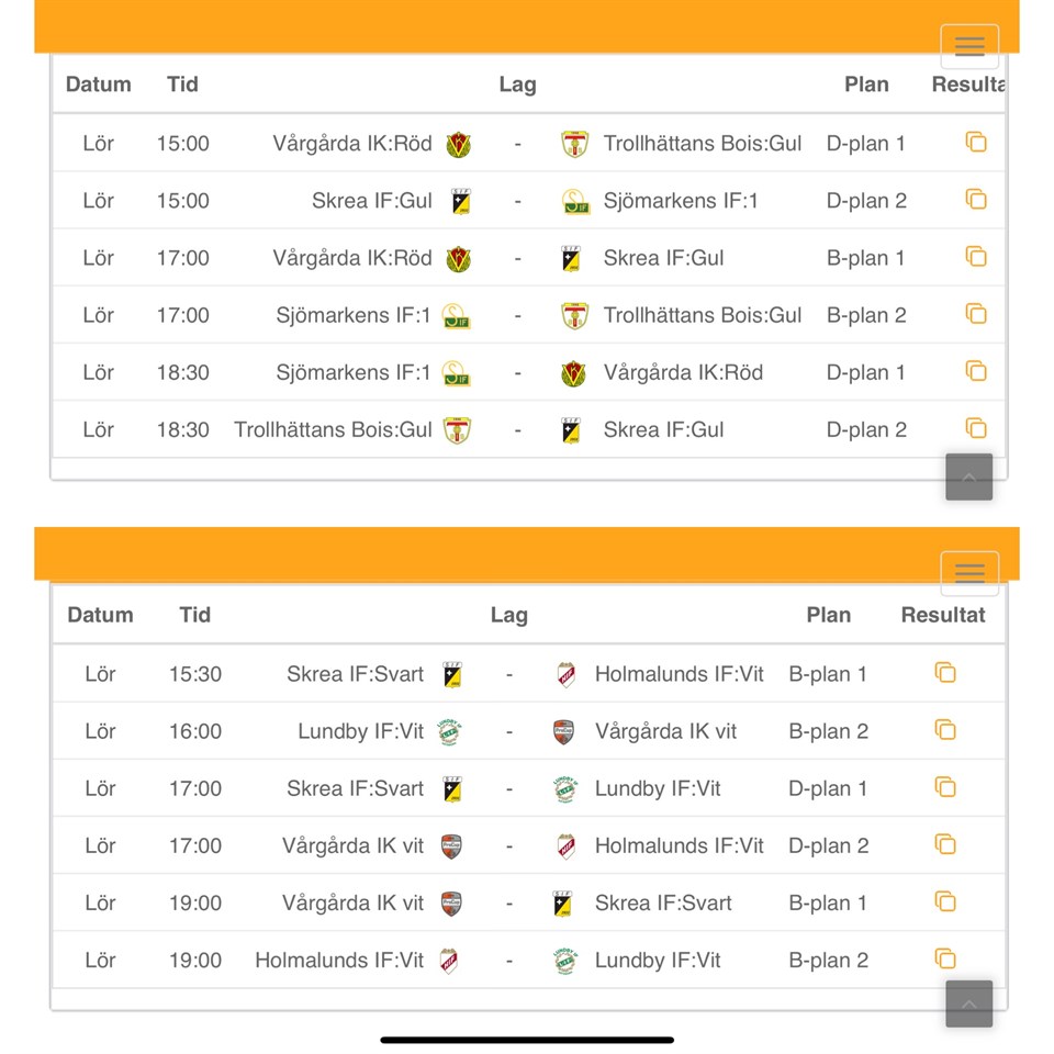 Skola / hall för övernattning och mattid för lördag är nu klar. Planen i stort är som följer: LÖRDAG 9 AUGUSTI Avresa kl. 10:00 från Skrea IP Ankomst Alingsås: Inkvartering i Alströmergymnasiet, Teatergatan 13, 441 55 Alingsås. Medresande föräldrar får fria aktiviteter. Lunch: 13:10 Matcher: Första startar 15:00, sista kl. 19:00 se spelschemat som bild. Mellanmål: Barnen tar med eget mellanmål. Middag / kort ”häng” med de familjer som är på plats om vädret är fint och vi kan vara ute. Lagkassan betalar spelarnas mat. Kl. 22:00 Läggdags SÖNDAG 10 AUGUSTI Frukost 06:30-09:00 Lunch: Burgare på fotbollsarenan (ingår) Matcher: Omlottning efter lördag men pojkar 11 års matcher startar mellan 13:30 och 17:56 Mellanmål: Klubbkassan betalar för något enkelt. Middag: Vi avslutar med mat innan hemresa. Klubbkassan betalar för spelarna. Vi återkommer under veckan med uppdaterad inbjudan / info via Laget.se med några frågor som vi ber er svara på (Kör ni och har ni extra platser? Har ert barn någon matallergi / specialkost? Kommer ert barn sova med laget?). Ni kan läsa mer om cupen här: https://www.procup.se/cup/cupstartgeneric900_skin02.php?ev=38436&lang=SVE Snart är det äntligen dags för cup! ⚽⚽⚽
