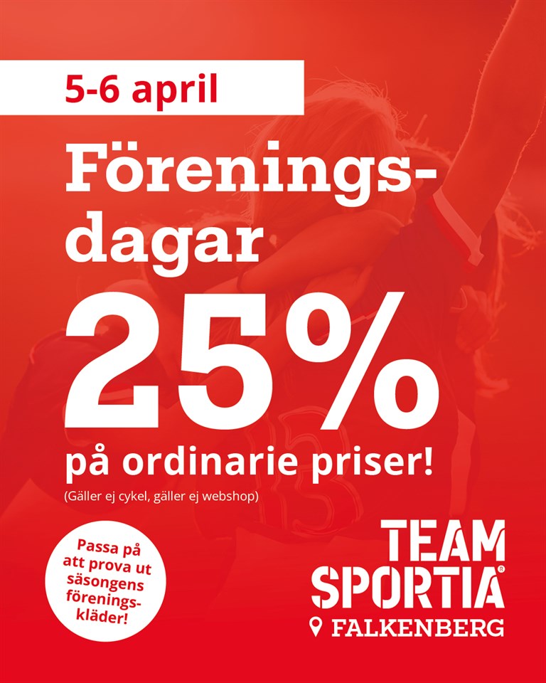 Föreningsdagar -25% Team Sportia 5-6 april